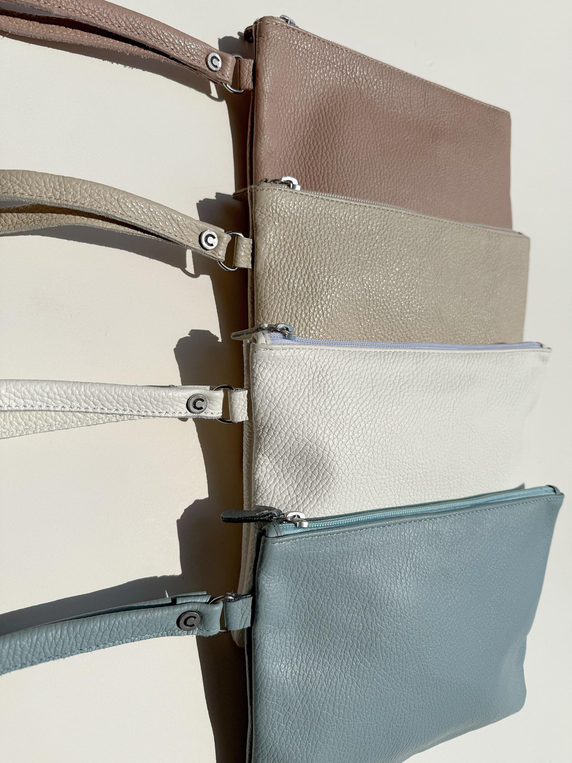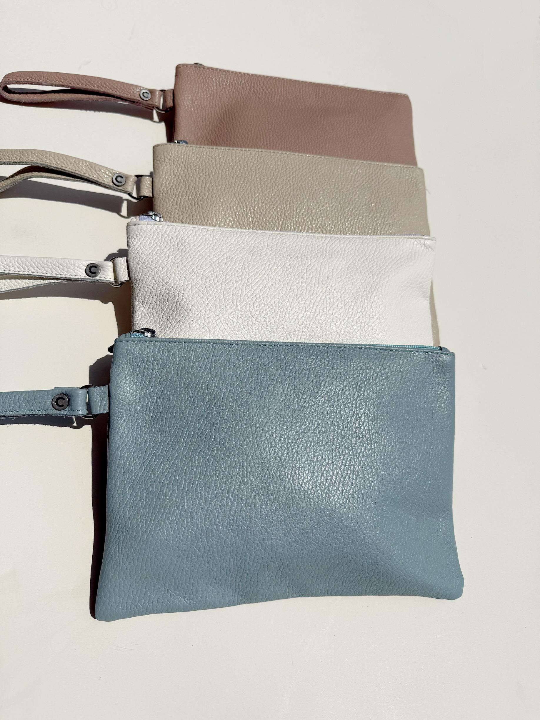 Soft, minimal and chic my new handmade beige leather clutch is crafted from full grain cow leather and made to fit effortlessly into your summer wardrobe. Featuring a wrist strap, zip closure and metal buckle detail, it s perfect for day-to-night. A timeless leather pouch designed for ease and elegance. Find them only at our Store.