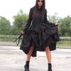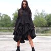 Black Flared Shirt Dress With Sleeves Loose Fit