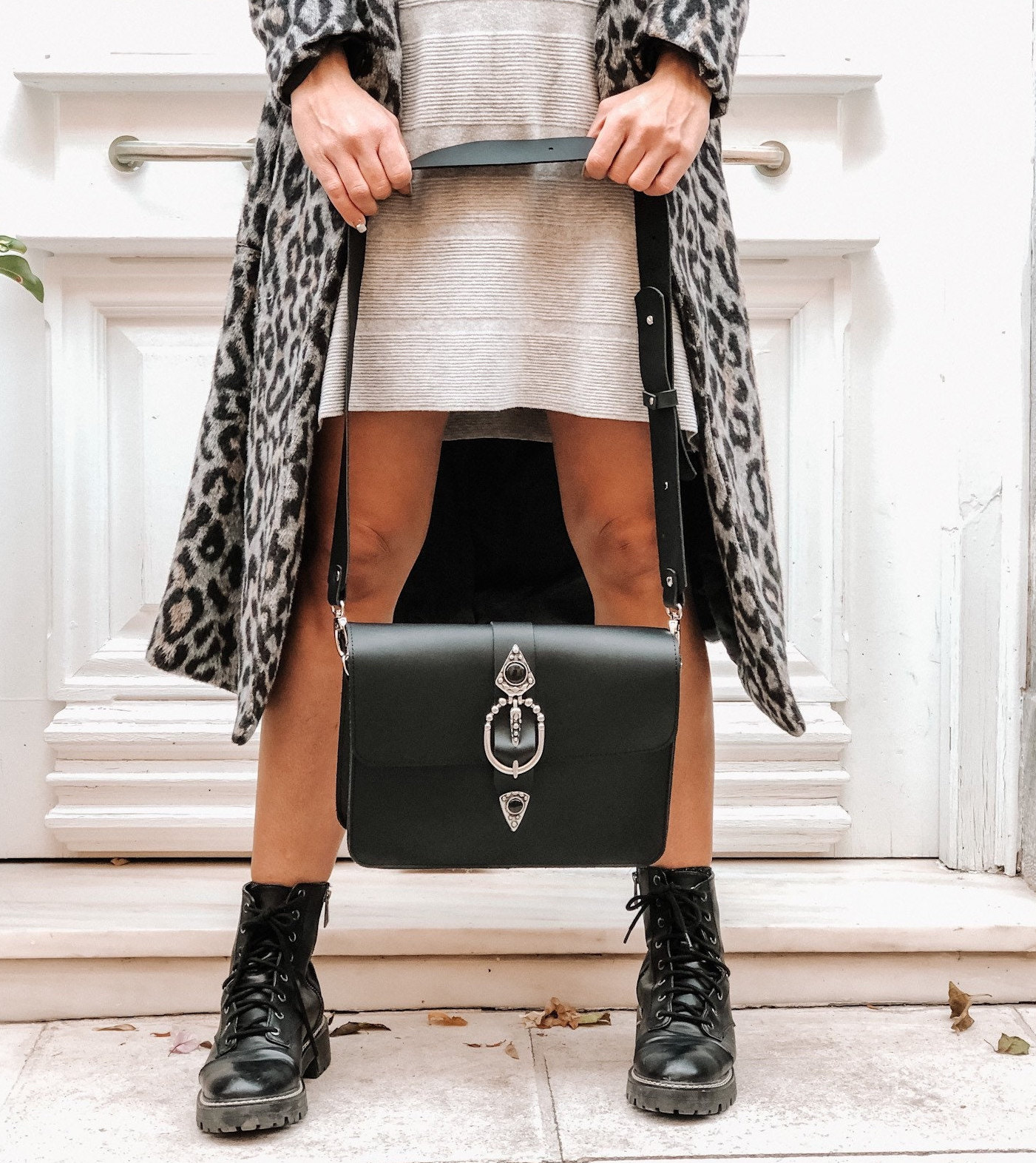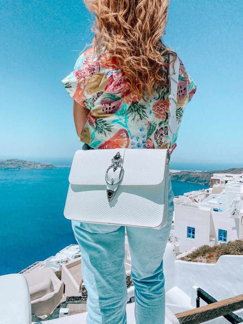 This Handmade Leather Handbag is named ”Regeneration” and is based on my efforts to create different and easy to wear designs with unique decoration, that could cause the regeneration of creativity in bags. This is a real Unique rectangular bag, that is made from full grain leathet with silver Buckles from zamak in boho design. I create it for women who work hard or want to gave fun as well. You can wear it as a crossbody bag, Shoulder Bag, or just a Purse. (The size at the photo is Large) Find it only at us Store.