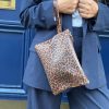 This handmade clutch bag is crafted from full grain leather in a stunning leopard print. It features a side leather strap, zipper closure, and metal details. A statement piece that adds bold sophistication to every outfit from everyday wear to night-out looks.