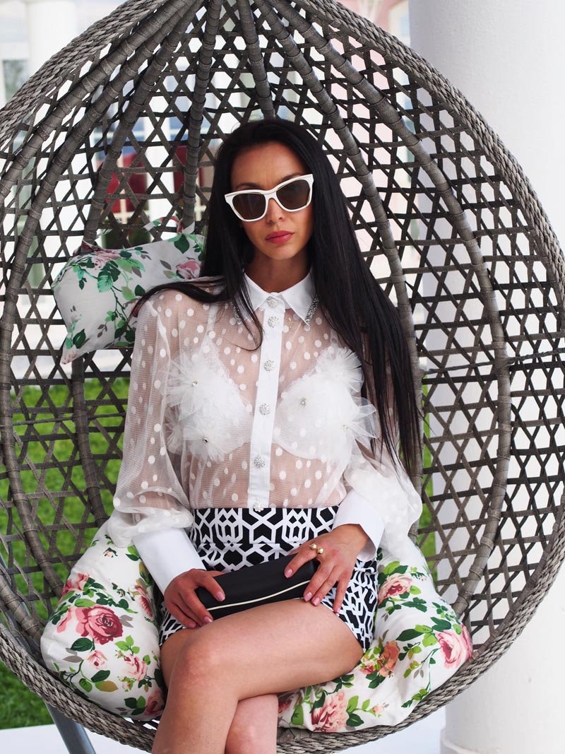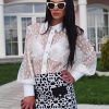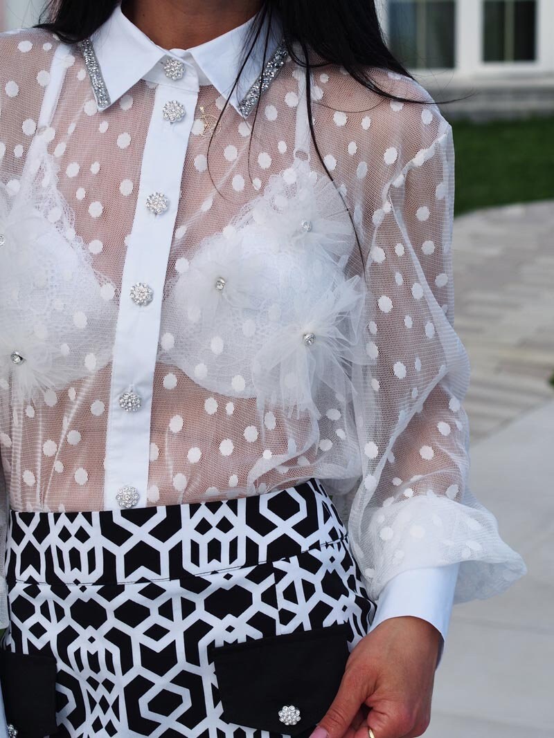 Unique Designer Shirt Made Of Very Fine Lace Dots With Stones On The Collar And Sparkling Buttons,Suitable For Your Holiday And Unique Look